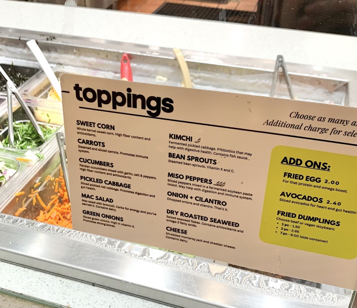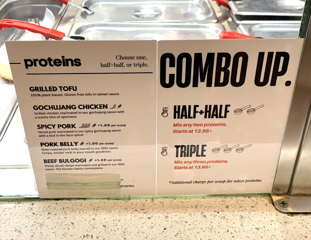 Choice of any 3 proteins (one scoop each). Allergen Guide: Items marked with * contain gluten. Items marked with ** contain fish sauce and/or shellfish. Please note: Bowl pictured may differ from your order based on selected items.